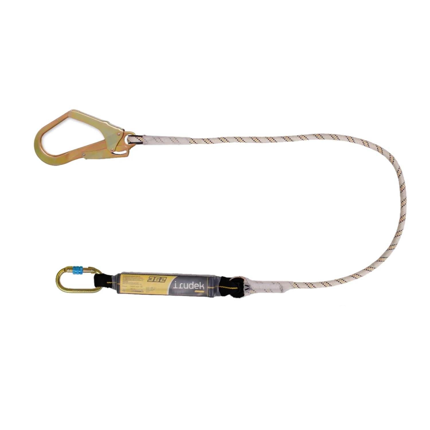 Dotato di un moschettone con chiusura filettata 981 (apertura 18 mm) all’estremità dell’assorbitore e un moschettone 39 (apertura 50 mm) all’estremità della corda.