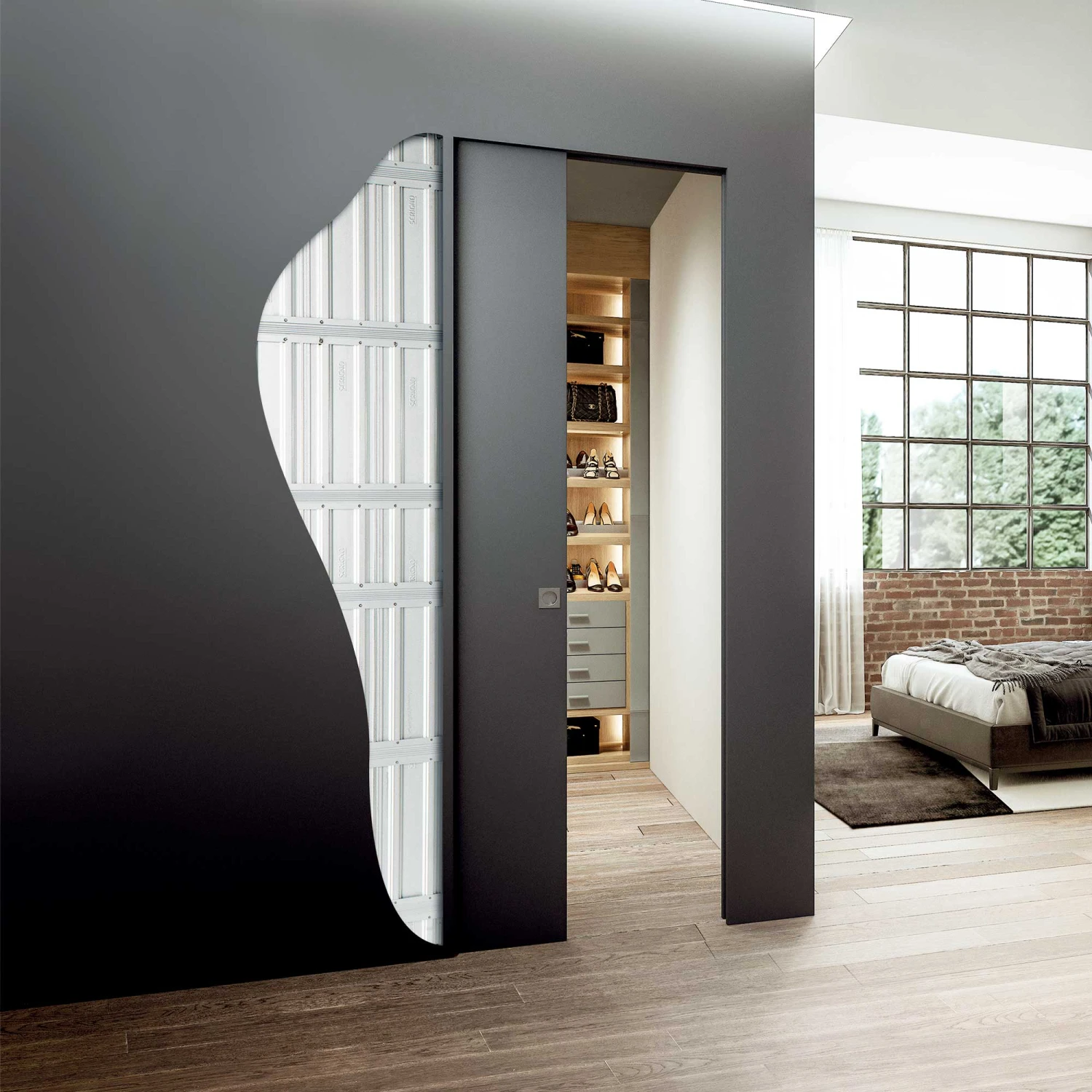 • Estetica minimalista: scomparsa totale di stipiti e cornici coprifilo, per una parete libera e moderna.