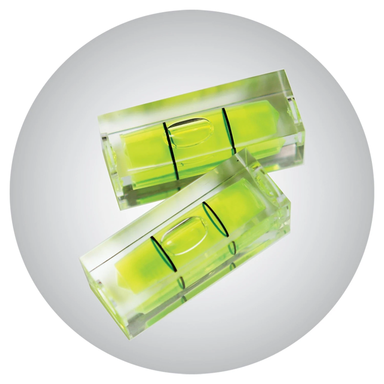 - Fialette per bolla in materiale acrilico antiurto tarate con la massima precisione a 0,5 mm/m (0,029°)