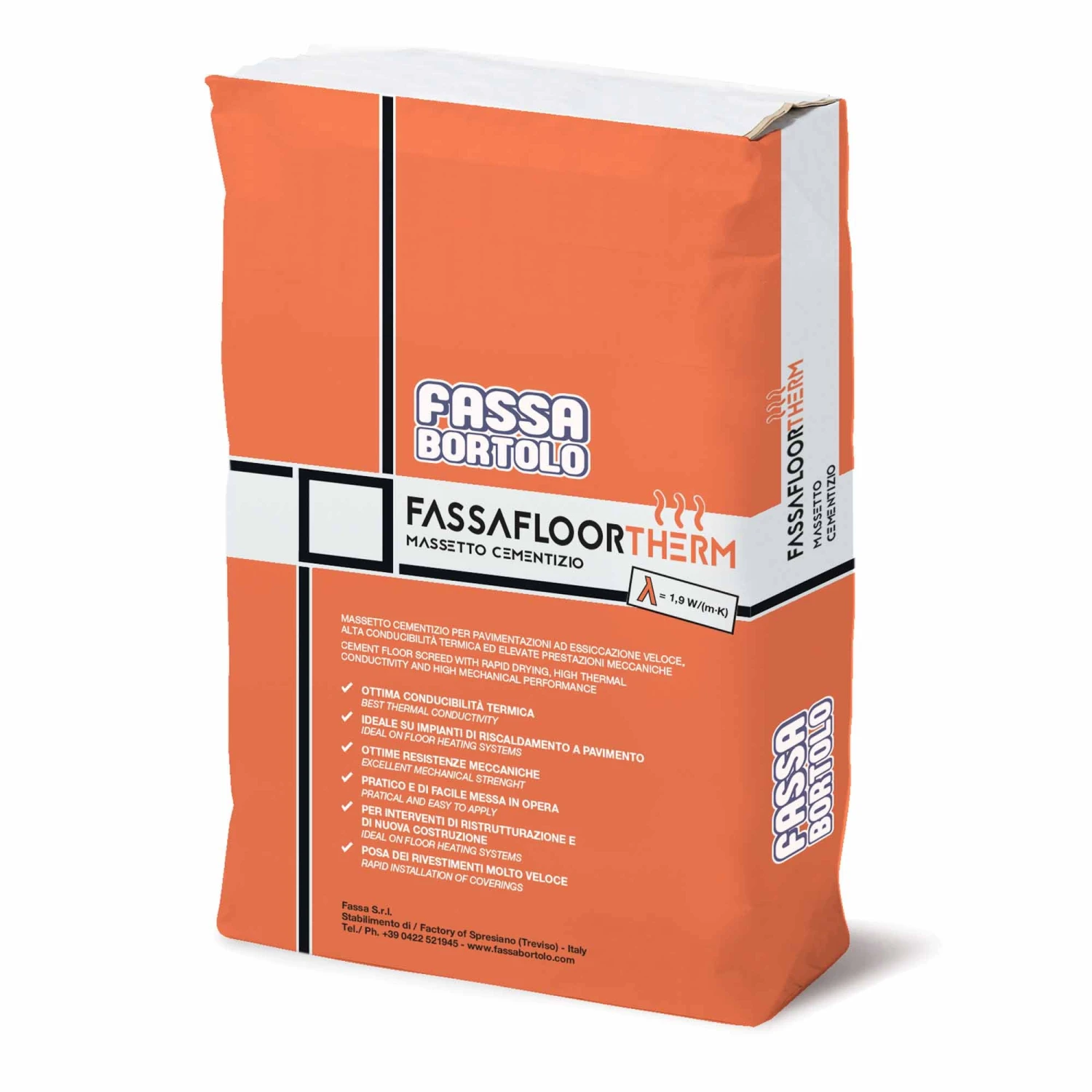 Il Massetto Rapido Fassa Floor Therm a base cementizia ad elevata resistenza meccanica e conducibilità termica, ad essiccazione veloce e ritiro controllato, per pavimenti interni ed esterni, pompabile a macchina.