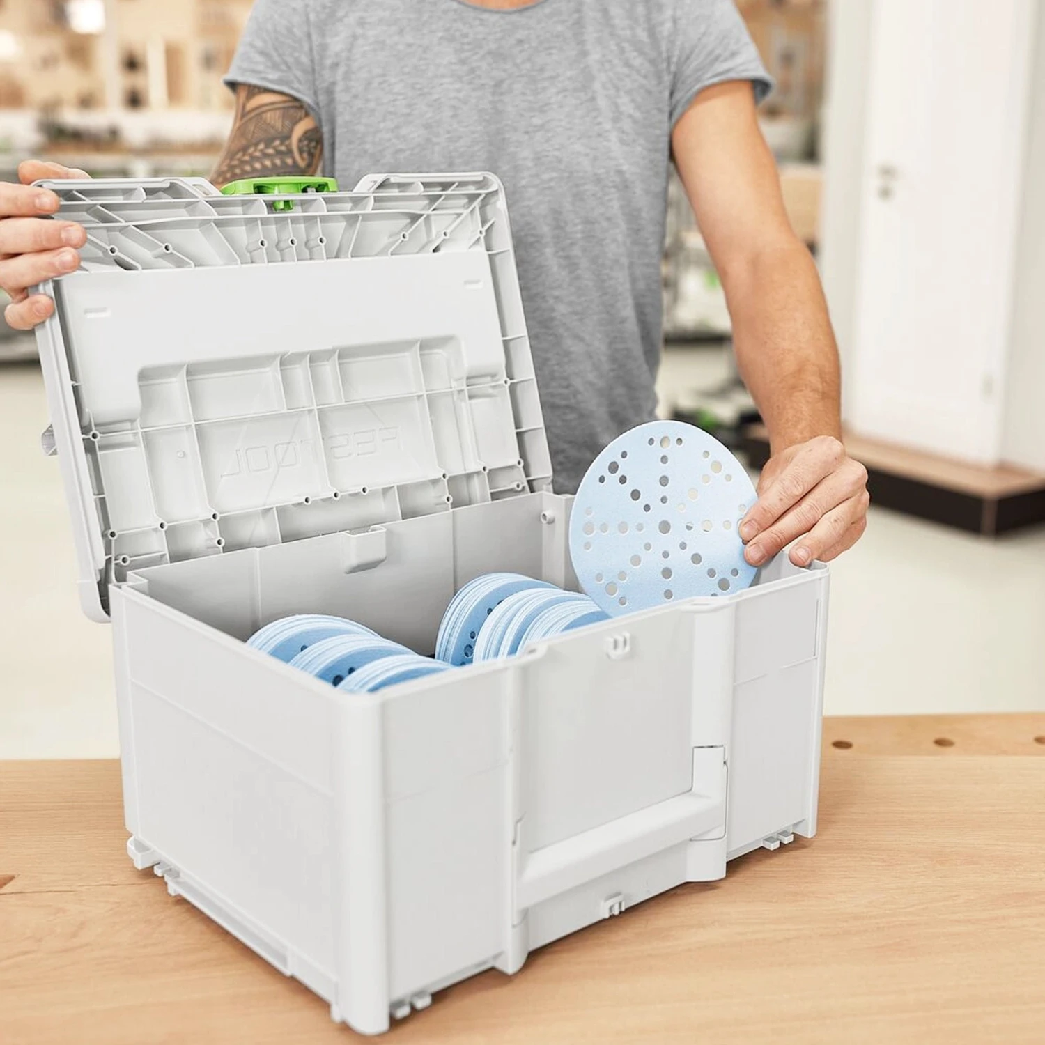 Systainer per abrasivo Granat Festool SYS-STF D150 GR-Set per abrasivi è il complemento ideale per la vostra levigatrice. Con la sua ampia gamma di grane, offre l’introduzione ideale al mondo degli abrasivi Granat. 20 dischi abrasivi Granat da P60 a P220 sono sempre a portata di mano. La struttura ordinata in base alle grane, nel Systainer per abrasivi è una cosa scontata. Ogni scomparto ha il suo posto, in modo che possiate trovare la grana che vi serve in un attimo. La semplicità d’integrazione vi permette di avere sempre a portata di mano la grana desiderata. Il Systainer protegge in modo ottimale gli abrasivi da influenze negative come polvere, spruzzi d’acqua e piegature. Inoltre, consente di trasportare facilmente l’abrasivo e di collegarlo ad altri Systainer, lasciando così un’impressione di professionalità ai vostri clienti. Dall’officina al cantiere, il Systainer per abrasivi vi offre flessibilità nel vostro lavoro quotidiano. Grazie al collaudato elemento di comando T-LOC, chiudere, aprire e accoppiare è un gioco da ragazzi. I Systainer sono compatibili tra loro e possono essere abbinati a tutte le precedenti generazioni di Systainer, nonché a molte altre macchine e accessori. Se si tratta di levigare, allora con Granat: per le vostre superfici perfette.