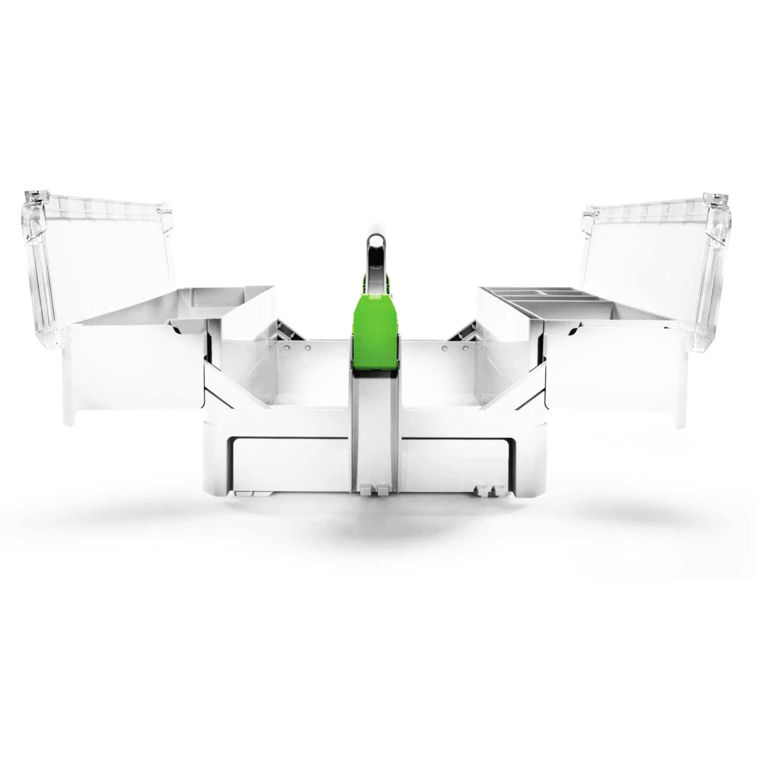 La Valigetta Festool SYS-StorageBox SYS-SB è la soluzione perfetta per organizzare minuteria, utensili e accessori con massima visibilità e praticità. Dotata di due vani superiori orientabili e un coperchio trasparente, ti permette di individuare a colpo d’occhio il contenuto, risparmiando tempo prezioso durante il lavoro.
